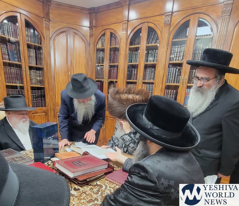 Also present at the gathering was the Rebbe’s son, HaRav Yaakov Ber Teitelbaum, Av Beis Din of Siget in Boro Park, son-in-law of HaRav Tzvi Hirsch Meislish, Av Beis Din of Shophron Williamsburg, one of the foremost talmidim of the Satmar Rebbe, HaRav Yoel Teitelbaum ZT’L, author of the Divrei Yoel. He was entrusted by the Rebbe with serving as the primary writer and editor of the Rebbe’s divrei Torah.
