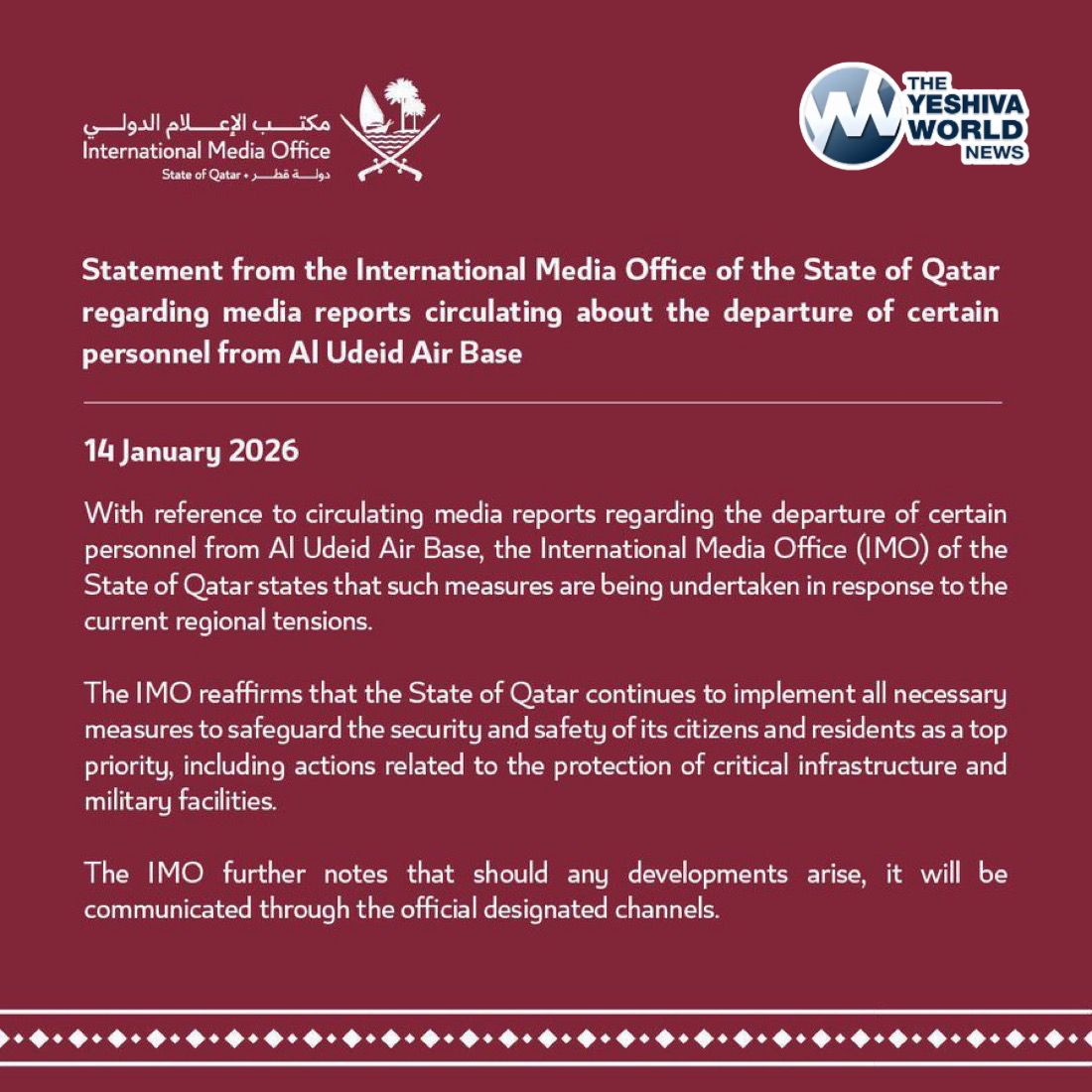Qatar has officially confirmed that some U.S. Army personnel have departed Al Udeid Air Base due to “current regional tensions.”
