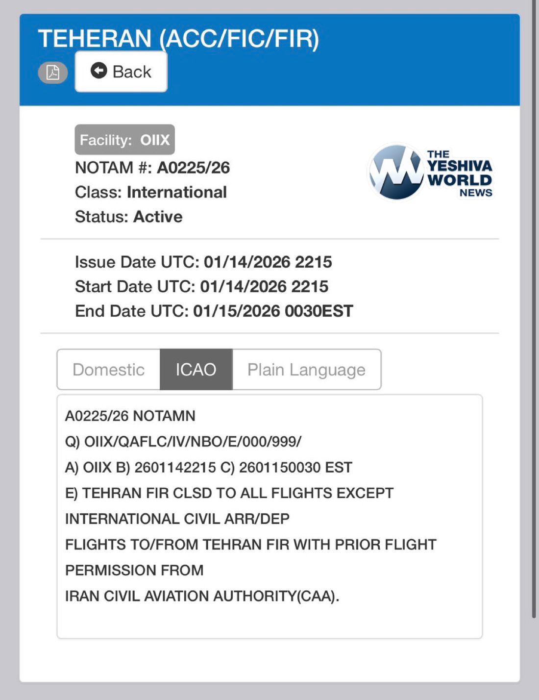 BREAKING: Iran says airspace is closed to all flights, except those with prior permission.