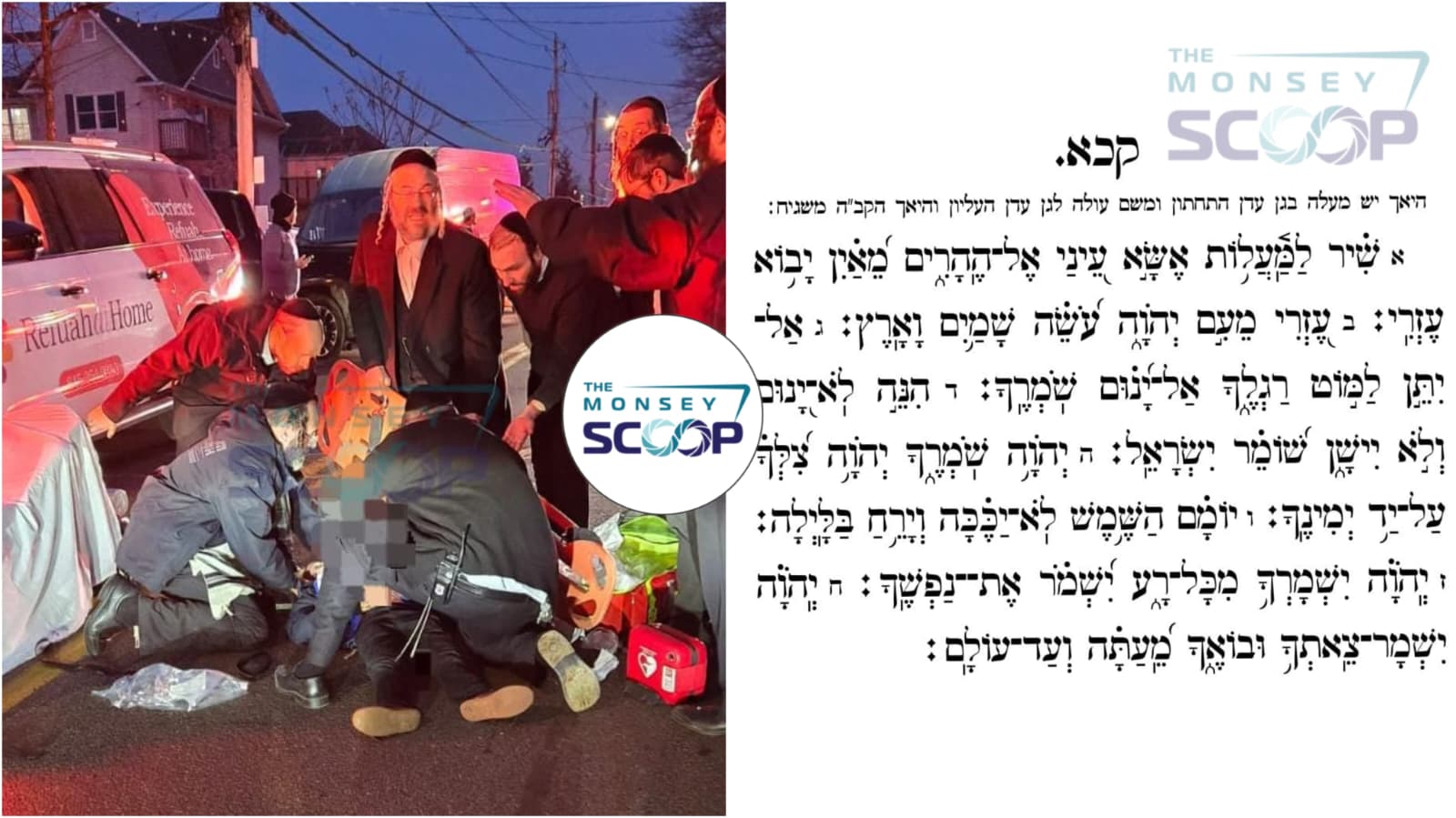 TEHILLIM: The tzibur is asked to daven for Yechezkel ben Chaya Esther , a child approximately 10 years old who was seriously injured after reportedly falling from a school bus on Main Street in Monsey. The child was reported to be semi-conscious at the scene and was rushed by Rockland Hatzoloh paramedics to Westchester Medical Center for treatment. Ramapo Police and Chaverim of Rockland also responded and assisted at the scene.