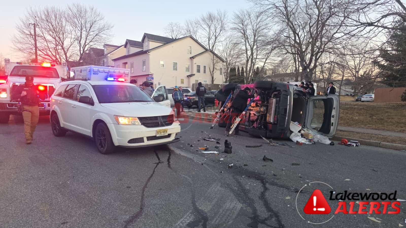 LAKEWOOD: Hatzolah is at the scene of a rollover MVA at Spruce and Cypress, with at least one patient extricated with injuries.